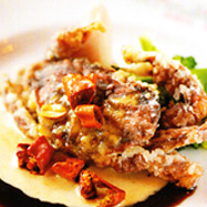 - 見た目も圧巻の大きさで、そのうえ丸ごと食べられる「ソフトシェルの唐揚げ」は大人気。
