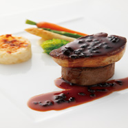 - 確かな技術で彩られた上品な料理の数々はさすがのひと言。「鴨ムネ肉のロースト “ドルチェフォルテ”長芋のグリルと」。