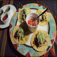 - メキシコの代表的な料理、タコス。肉の種類は、ビーフ、チキン、ポークの3種類から選べる。「タコス」700円。